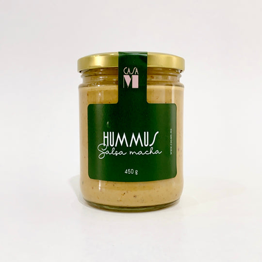 Ingredientes: Garbanzo orgánico, tahini, za’atar, aceite de oliva, ajo, paprika, sal de mar, Salsa Macha Casa M.