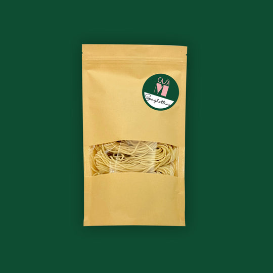 300 gramos de Spaghettini. "Spaghettini" es el diminutivo de Spago que significa cordel en español, por o que "Spaghettini" es un cordel pequeño.