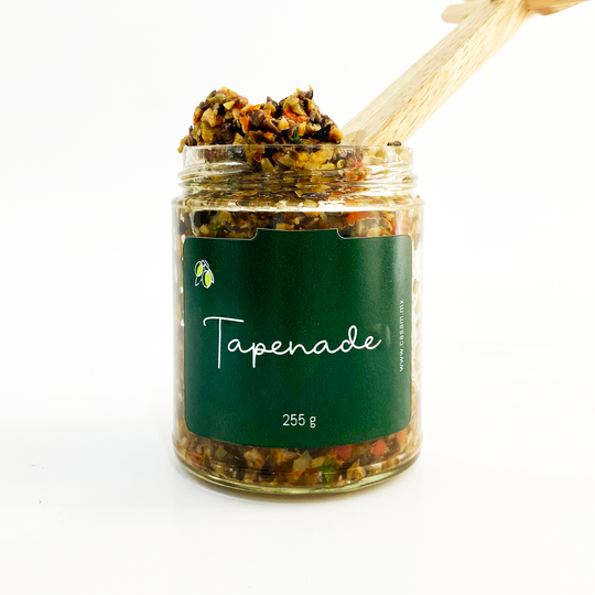 Nuestro Tapenade es una mezcla deliciosa de aceitunas verdes y negras, alcaparras, tomates deshidratados al sol, y hierbas de olor. Es perfecto como aperitivo sobre un pan de campiña, como fuerte sobre un buen corte de carne o mezclado con nuestra salsa de tomate con pasta fresca.
